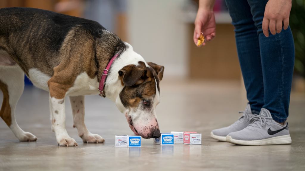 Gdy pies już rozumie, że zapach oznacza nagrodę, możesz przejść do prostych ćwiczeń w domu. Rozłóż na podłodze kilka miseczek lub pudełek – w jednym z nich schowaj próbkę zapachu. Reszta pudełek powinna być pusta, ale pies może je obwąchać, by porównać zapachy. Zadanie psa polega na odnalezieniu właściwego pudełka. Jeśli pies ma problem ze skupieniem, zacznij od niewielkiej liczby pojemników (np. tylko dwóch), a potem stopniowo zwiększaj ich liczbę. Za każdym razem, kiedy pies odnajdzie właściwe miejsce, pochwal go i podaj nagrodę.